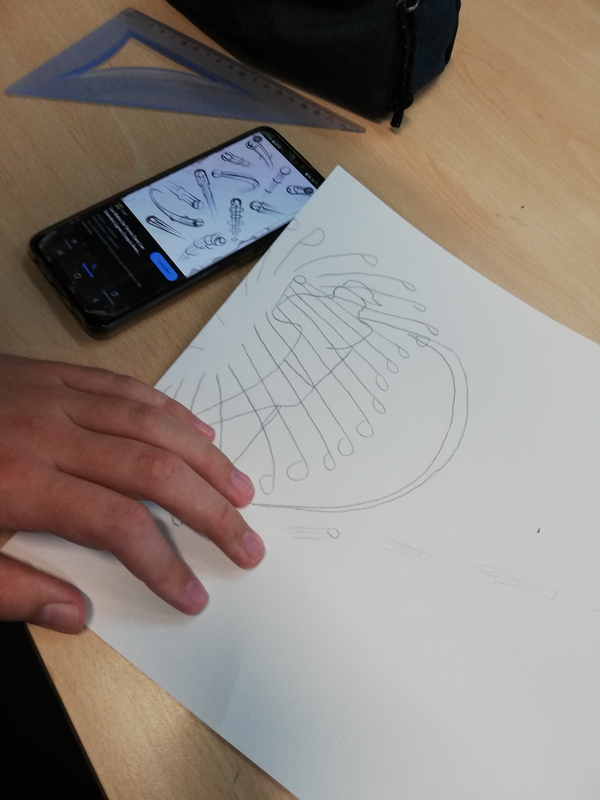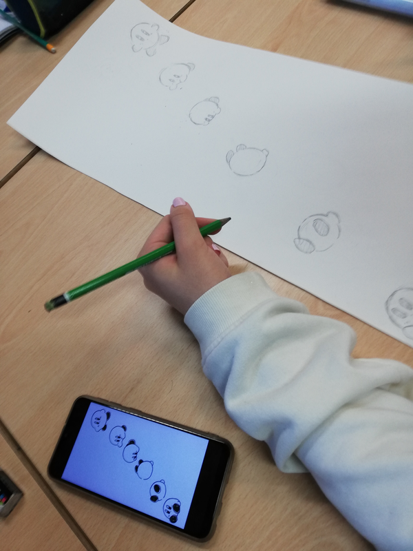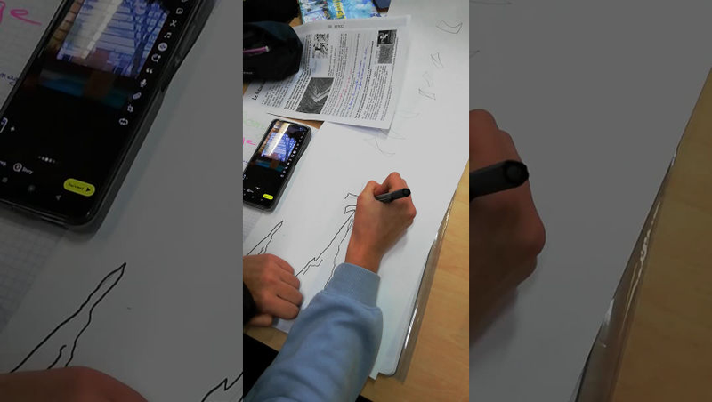 Léa a eu la très bonne idée de demander à une camarade de lâcher en l'air une feuille A4. Léa filme la feuille qui tombe et fait défiler la vidéo en boucle pour représenter le mouvement par le dessin.